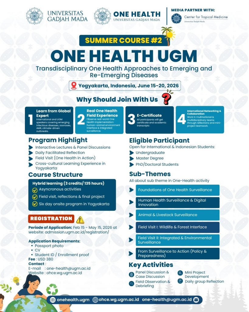 π§ Email: one-health@ugm.ac.idπ Website: https://ohce.wg.ugm.ac.id/summer-course-registration.